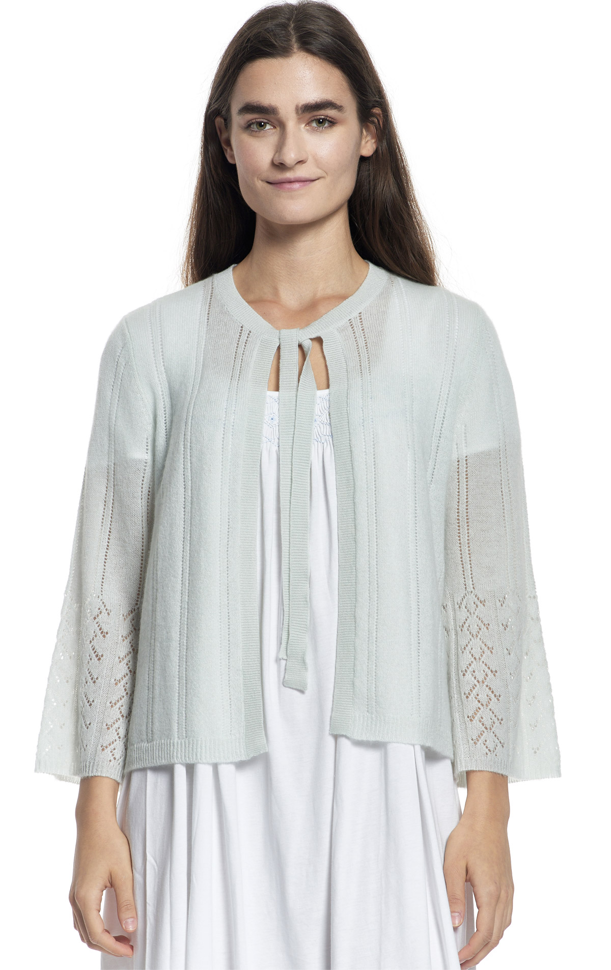 We used the finest cashmere to make this light weight but warm bed jacket that feels like heaven. The colors are delectable and the combination of different stitches makes it perfect.